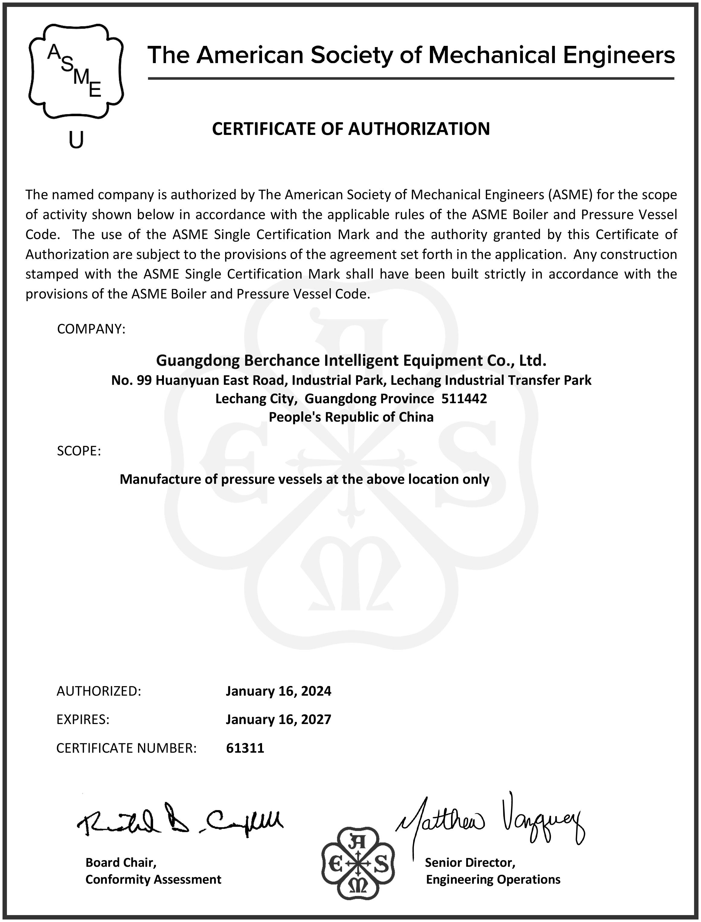 BERCHANCE Intelligent была основана в 2011 году и имеет штаб-квартиру в Панью районе, город Гуанчжоу. Это высокотехнологичное предприятие, признанное государством, и специализируется на производстве оборудования. Его производственные и изготовительные базы находятся в городе Лечан, Гуандунская провинция; Куньминг, Юньнань; и Баотоу, Внутренняя Монголия, общая площадь которых составляет 37 000 квадратных метров. В компании работает более 300 сотрудников, причем 15% занимаются исследовательскими и разработочными работами. Компания обладает мощными техническими возможностями, современным производственным оборудованием, точными измерительными приборами и строгой системой контроля качества, обеспечивающей 100% соответствие стандартам качества продукции. Специализируясь в двух ключевых областях - химическом оборудовании и фотоэлектрическом оборудовании - компания создала комплексную систему, охватывающую разработку, производство, продажу и обслуживание продукции. Она обладает лидирующими возможностями в области технологических инноваций и эффективными возможностями по поставке продукции, что позволяет ей оказывать профессиональную и постоянную поддержку рынку. Продукция химического оборудования включает в себя нержавеющие стальные сосуды под давлением, реакторы, смесители, ферментаторы, теплообменники, конденсаторы, резервуары и другое важное оборудование; продукция фотоэлектрического оборудования включает в себя монокристаллические печи, машины для вытягивания кристаллов, водоохлаждаемые экраны и другое ядрое оборудование. Кроме того, компания может создавать по индивидуальному заказу сосуды под давлением, соответствующие стандартам GMP для применений I и II классов, а также нестандартно проектируемые сосуды под давлением, чтобы удовлетворить потребности различных проектов. Компания получила сертификат национальной высокотехнологичной компании, сертификат провинциальной специализированной и инновационной компании, сертификат ASME, сертификаты менеджмента системы ISO9001, ISO14001 и ISO45001, а также лицензии на производство сосудов под давлением, лицензии на проектирование и лицензии на производство специального оборудования. Компания владеет автоматическими технологиями сварки, такими как плазменная сварка и глубокопроникающая сварка, имеет более 20 патентов на изобретения и продолжает увеличивать свою патентную базу. BERCHANCE Intelligent стремится предоставлять клиентам эффективные и надежные комплексные решения по оборудованию. В будущем компания будет продолжать углублять технологические инновации и улучшать управление, постоянно удовлетворять разнообразные потребности клиентов и использовать свою профессиональную экспертизу и мастерство для поддержки развития химической и фотоэлектрической промышленности Китая.